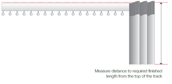 When using a curtain track, measure from the top of the track to where the curtain is to finish at the bottom.